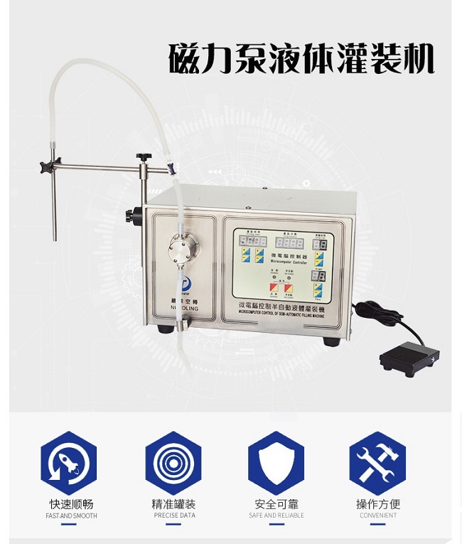 除此之外,液體灌裝機的上壓塊可以與泵頭本體分離,裝卡軟管方便,根據(jù)用戶需要,可串接多個泵頭,外形美觀、考究,結(jié)構(gòu)緊湊、流量寬泛。方便OEM方式配套應(yīng)用。具有定時功能,可實現(xiàn)半自動分配、灌裝具有半電流鎖定功能。這樣的灌裝機滿足很多生產(chǎn)需要,現(xiàn)在以及未來迅捷機械還會研發(fā)出更多的灌裝機設(shè)備,讓我們來期待吧!